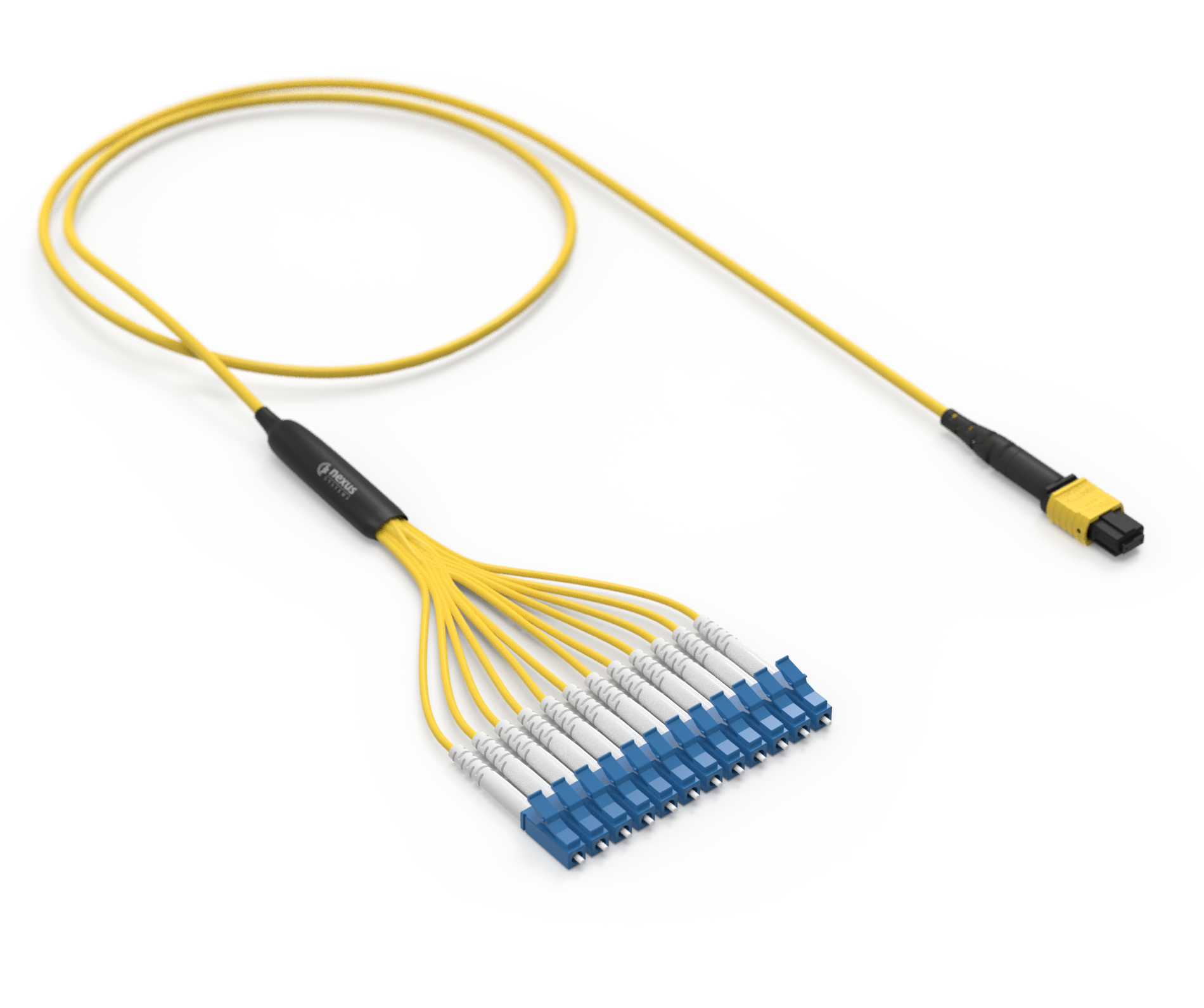 Nasze kable Fan-Out wyposażone są w żeńskie lub męskie złącze MTP na jednym końcu i w 24x LC/UPC simplex na drugim końcu. Pozwala to na rozdzielenie sygnałów 10Gbps na kilka urządzeń lub portów. Długość rozszycia 24 włókien simpleksowych wynosi 1m. Wyjątkiem jest kabel o długości 1m, gdzie rozszycie wynosi 0,5m.
