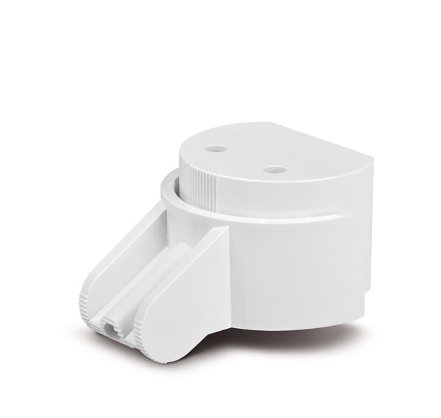 Regulowany uchwyt do montażu czujek ruchu, pozwalający na montaż ścienny i sufitowy. Dwa stopnie swobody zestawu umożliwiają regulację obrotu czujki w poziomie oraz jej pochylenia.